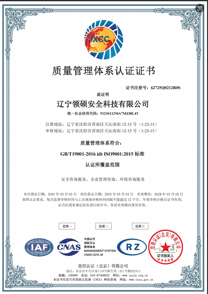 遼寧領(lǐng)碩安全科技有限公司位于遼寧省沈陽市渾南區(qū)天壇南街12-15號,注冊資金300萬。主要經(jīng)營范圍為遼寧省范圍內(nèi)的安全環(huán)保咨詢,生產(chǎn)安全事故應(yīng)急預(yù)案技術(shù)服務(wù)、企業(yè)雙重預(yù)防機(jī)制建立、履職能力評估、企業(yè)科研項目安全部分服務(wù)等的技術(shù)服務(wù)機(jī)構(gòu)。現(xiàn)有員工12人,其中包括5名遼寧省級安全生產(chǎn)專家。成立于2022年4月18日,在盤錦市成立至今已經(jīng)為30余家企業(yè)提供了安全環(huán)保技術(shù)咨詢。 業(yè)務(wù)范圍包括:技術(shù)服務(wù)、技術(shù)開發(fā)、技術(shù)咨詢、技術(shù)交流、技術(shù)轉(zhuǎn)讓、技術(shù)推廣,安全咨詢服務(wù),環(huán)保咨詢服務(wù),標(biāo)準(zhǔn)化服務(wù),企業(yè)管理咨詢,科技中介服務(wù),工程管理服務(wù),特種作業(yè)...查看更多